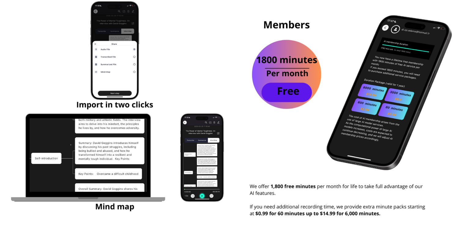 - The ROCA recorder offers AI-powered transcription and summarization capabilities.